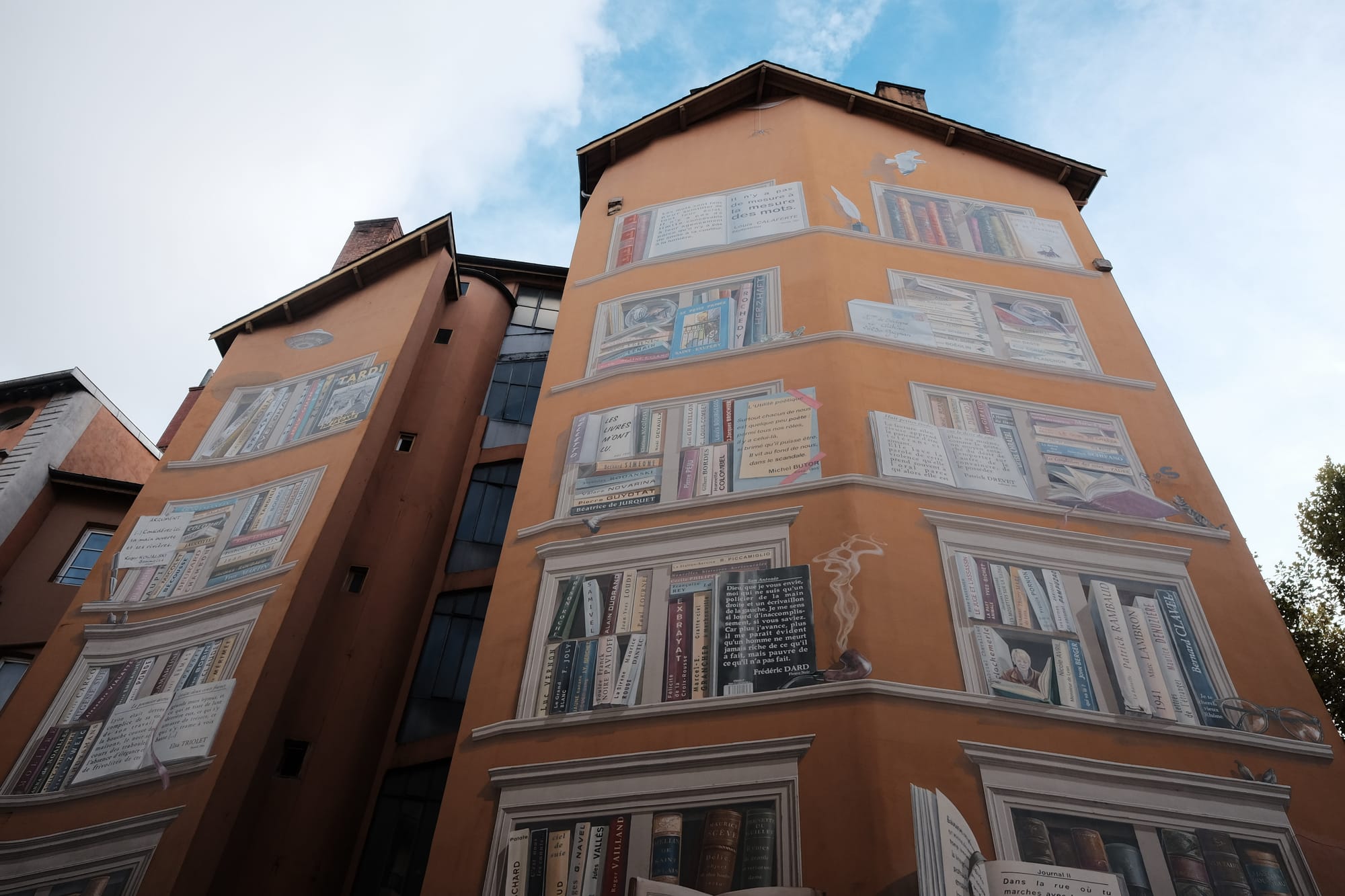 There’s something wonderfully playful about strolling past a trompe l’œil bookshop celebrating the work of local authors. Elsewhere, the Lumière brothers appear at an upstairs window. Silk weavers go about their trade in the neighbourhood that they made famous. There are now more than 150 murals, and each celebrates a different area of the city.